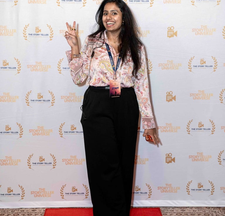 Prathyusha Vudatha serves as Programming Coordinator for The Storyteller Universe Film Festival. She supports film selection logistics, coordinates festival operations, and manages on-site accreditation and guest services. During the festival, she oversees delegate reception and badge distribution while assisting filmmakers and industry guests. Her role contributes to the smooth execution of programming and professional engagement at the festival. 😄✨